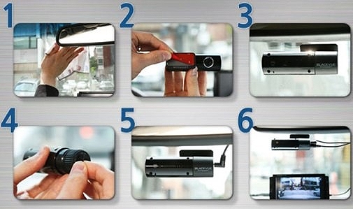 Установить прибор в салоне автомобиля очень просто! Регистратор крепится на лобовое стекло при помощи двустороннего скотча. Преимущество такого способа в том, что при резком перепаде температуры или в морозную погоду аппарат не отвалится от крепления, как это могло бы быть в случае с присоской. Снять прибор очень просто — одним нажатием специальной кнопки. Компактная модель не закрывает обзора во время движения.