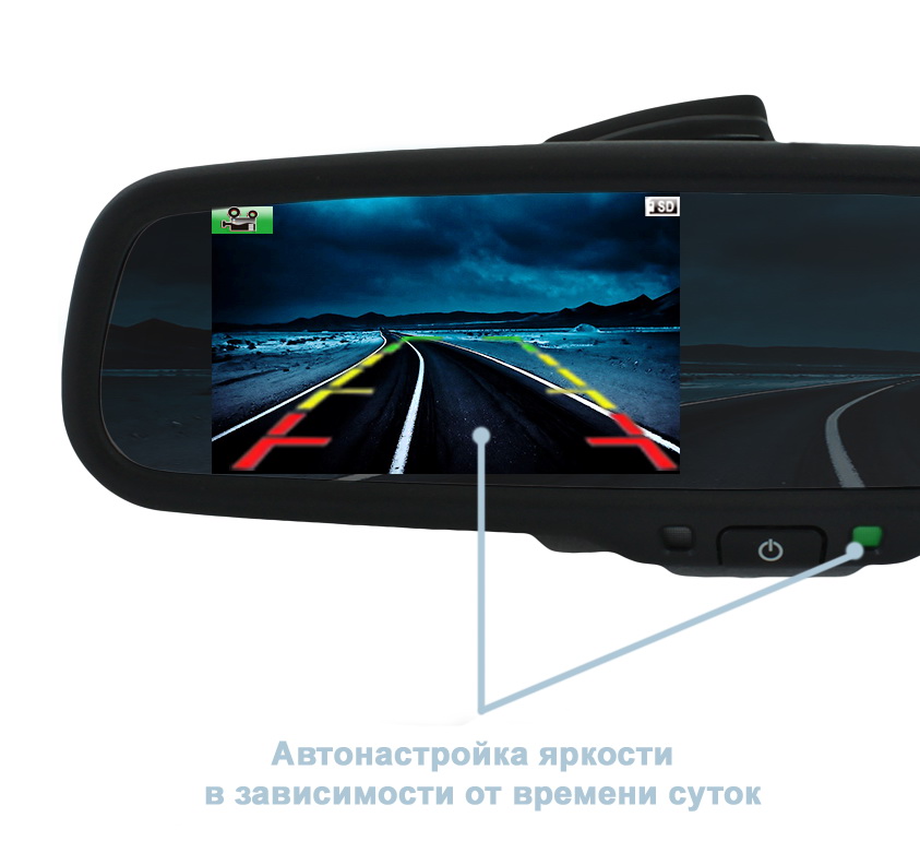 Важным достоинством является то, что в выключенном состоянии дисплей абсолютно незаметен, поэтому он не отвлекает вас от вождения. Кроме того, в зависимости от времени суток экран автоматически корректирует яркость изображения, поэтому вы сможете все рассмотреть при любых условиях.