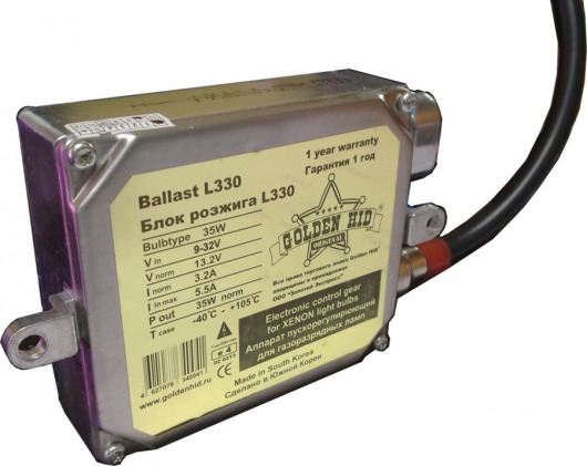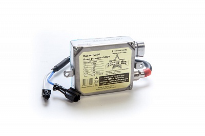 Блок розжига Golden HID L330 — балласт в толстом корпусе, который можно установить не только в легковой, но и грузовой автомобиль. Разжигатель имеет расширенный рабочий диапазон (9-32 В), а такое бортовое напряжение сети у большинства автомобилей и мотоциклов.