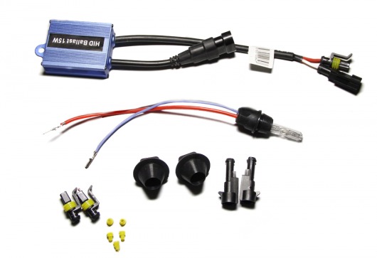 Комплект состоит из: 1 блока, 1 лампы, проводки и переходников под цоколь ламп BA15S , T10, 7440, 3156