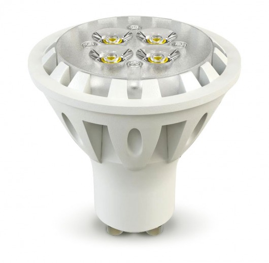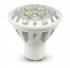 Светодиодная лампа Spotlight GU 10 6W — это отличная альтернатива галогеновой лампе с цоколем MR16. Потребляемая мощность — всего лишь 6 Вт. Яркость — 350 Лм, а температура свечения  3000 K (это желтый свет). Рабочее напряжение — 220V. Высокий индекс цветопередачи обеспечивает четкое и контрастное восприятие. К тому же, такая лампочка не содержит ртутных паров в колбе (в отличие от люминесцентных), а значит, при повреждении не представляет опасности для здоровья. Рассеиватель-линза.