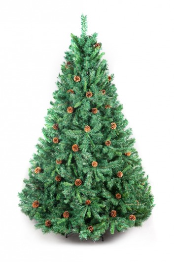 Новогодняя искусственная ель с шишками — прекрасная альтернатива живой елке. Это изящное деревце с очень пышной кроной насыщенного зеленого цвета и настоящими еловыми шишками ни в чем не уступает лесной красавице. Новогодняя елка выстотой 2,4 м  станет просто незаменимой для праздничных ггуляний во дворе.