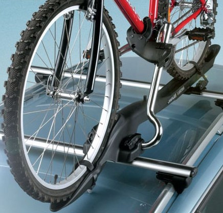 • Багажник для велосипеда устанавливается на крышу автомобиля (с правой стороны) на поперечники, причем, как на стандартные прямоугольные, так и на аэродинамические