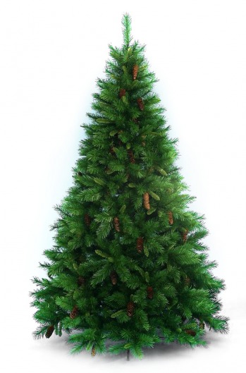 Зеленая сосна с шишками прекрасно смотрится без новогодних украшений. А значит, не нужно покупать массу игрушек — вам достаточно будет приобрести обычную электрическую гирлянду. На ветках, сделанных из ПВХ, необыкновенно красиво преломляется искусственный свет, благодаря чему сосенка приобретает неземной облик. Подсвеченная таким образом, искусственная сосна создаст волшебную атмосферу новогодних праздников.