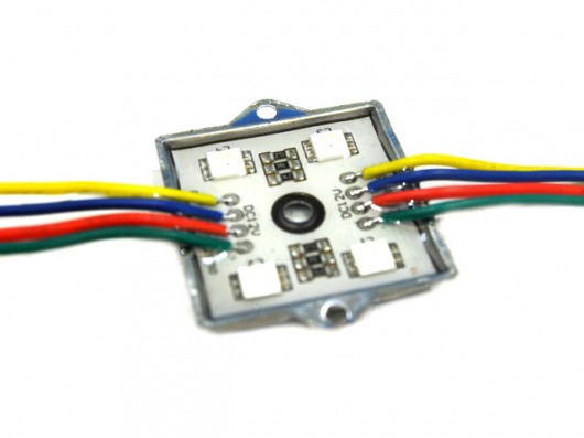 Квадратный светодиодный модуль MS 5050-4 IP65 RGB — это 4 диода SMD 5050 цвета RGB и резисторы с рабочим напряжением 12V, которые находятся в металлическом корпусе. Вы можете управлять модулем и создавать яркие световые эффекты с помощью контроллера RGB. Корпус залит двухкомпонентным компаундом. Поэтому вы можете использовать светодиодный модуль led в условиях повышенной влажности и резкого перепада внешней температуры от -30 до +50 градусов.