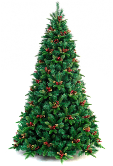 Искусственная елка-премиум «Франция» от Ели PENERI высотой в 2,44 метра — это абсолютно точная копия живой лесной ели, которая привлекает к себе внимание необычным декором из настоящих еловых шишек, плодов рябины и вьющихся стеблей. Иголки 2-х видов (литые и из ПВХ пленки) практически не отличимы от настоящей хвои. Они очень упругие, мягкие, не мнутся и не осыпаются. Пушистая зеленая крона с ветками разных оттенков смотрится очень натурально и естественно, а декоративные розетки придают новогодней ели особый шарм. Такую елку премиум класса можно даже не украшать: она уже сама по себе выглядит очень эффектно и станет идеальным новогодним украшением для любого большого помещения. А можно установить елку во дворе, чтобы вместе с родными и близкими встретить праздник на улице.