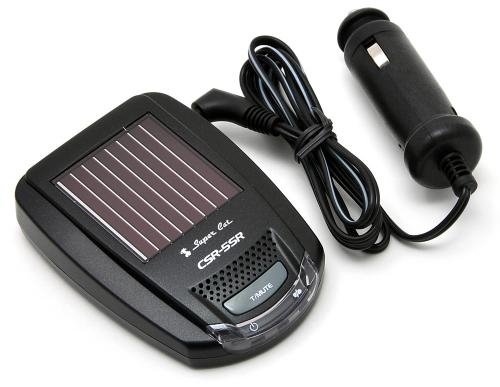 Весьма полезной инновационной разработкой является солнечная батарея на крышке корпуса. Благодаря этому альтернативному источнику питания автомобильный радар-детектор Super Cat CSR-5SR можно эффективно использовать в летнее время, экономя при этом заряд аккумулятора. А вот в зимнее время все же рекомендуется использовать детектор, запитывая его от гнезда прикуривателя.