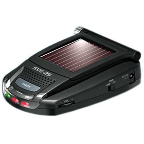Встроенный аккумулятор автомобильного радар-детектора Super Cat SVE-29R может заряжаться как от бортовой сети, так и от солнечной батареи, установленной на верхней крышке корпуса. Специальный поворотный механизм солнечной батареи позволяет прибору улавливать всю солнечную энергию. При непрерывном использовании, заряда аккумулятора хватает на 30 полноценных часов работы.