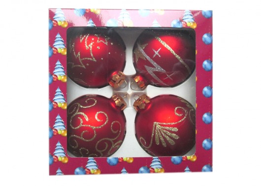 В набор PeneriGifts входят 4 стеклянных елочных шара диаметром 8 см. Красные матовые шарики с разноплановыми узорами смотрятся добротно, нарядно и гармонично. Двух-трех таких наборов будет вполне достаточно, чтобы целиком нарядить комнатную елку. А стоит ли говорить, что набор елочных шариков будет отличным новогодним подарком кому-нибудь из ваших родных и близких.