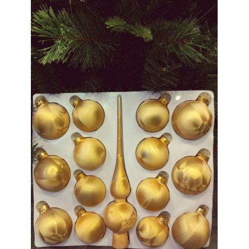 Набор стеклянных елочных шаров с верхушкой PeneriGifts (золотистые, 15 шт.)