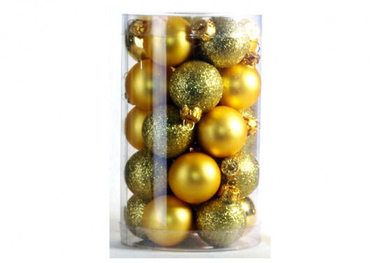 В набор PeneriGifts входят 25 стеклянных шаров диаметром 3 см. Этого более чем достаточно, чтобы целиком нарядить любую домашнюю ель. Даже не обязательно добавлять мишуру — любая елка и без нее будет выглядеть элегантно и самодостаточно. Сочетание матовых, глянцевых и переливающихся золотистых шариков с блестками смотрится добротно, нарядно и гармонично.