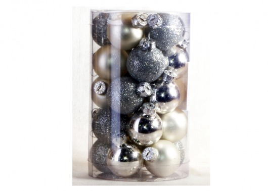 Набор стеклянных елочных шаров PeneriGifts (серебристые, 25 шт.)