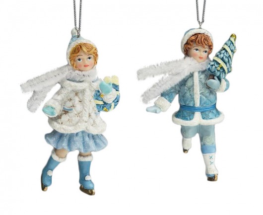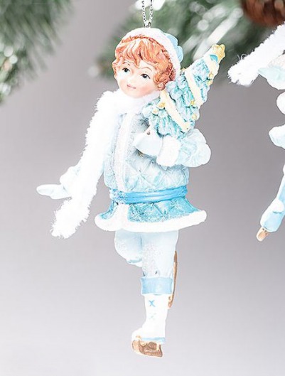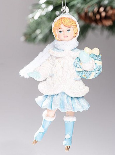 Милое елочное украшение в виде фигурки девочки-фигуристки в голубом наряде высотой в 12,5 см прекрасно дополнит праздничную новогоднюю атмосферу в вашем доме. Такое новогоднее украшение будет очень мило смотреться на любой елке и обязательно понравится детям.