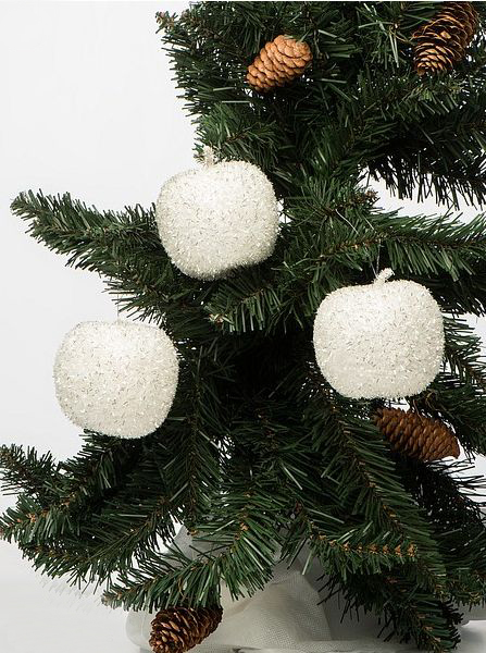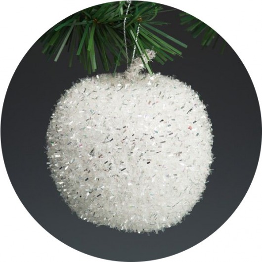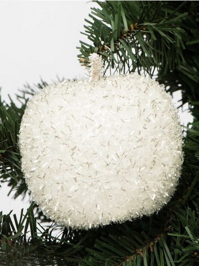 Игрушка на елку в виде блестящего белого яблока диаметром 10 см будет эффектно, стильно и оригинально смотреться на любой елке. Убедитесь в этом сами и удивите своих гостей. Только представьте, как будут обрадованы дети, увидев, какой потрясающий "урожай" вместо привычных шишек оказался на елке!
