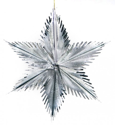 Мерцающая серебряная звезда из фольги — прекрасный вариант эффектного и недорогого новогоднего украшения. Новогодняя звезда диаметром 30 см отлично подойдет для украшения уличных елок и просторных помещений. Такая звездочка смотрится очень нарядно, особенно при искусственном свете. А кроме того, она прочная и хорошо хранится, и поэтому будет радовать вас еще много лет.