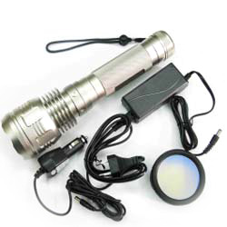 Фонарь ксеноновый XV1000F - это надежный фонарь с алюминиевым корпусом, который отличается малым расходом энергии и компактными размерами при силе света в 1100 Люмен. В комплект поставки фонаря входит специальный футляр, в который укладываются все комплектующие - автомобильное зарядное устройство от прикуривателя, сетевое зарядное устройство и дополнительный аккумулятор.