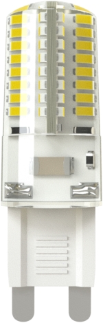 Светодиодная лампа X-Flash Finger с цоколем G9 подходит для светильников акцентного и декоративного освещения, и вы сможете установить ее в настольную лампу, бра или люстру. Данная модель рассчитана на напряжение 220 В. Мощность диодной лампы X-Flash — 3 Вт., яркость — 220 Лм, а температура свечения – 3000 K (это желтый свет). Состоит LED лампа из 64 светодиодов и имеет широкий угол свечения – 270º. Прозрачное силиконовое покрытие гарантирует стойкость к повреждениям и эффективное рассеивание тепла.