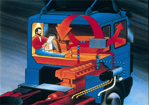 Отопитель Вебасто Thermo 50 работает на дизельном топливе из бака вашего автомобиля. После включения отопителя в камеру сгорания подаются топливо и воздух. Дизель сгорает, за счет чего подогревается охлаждающая жидкость. Нагретая жидкость в теплообменнике прокачивается насосом отопителя по охлаждающему контуру автомобиля, в результате чего прогревается двигатель и радиатор штатной «печки». Система автоматически включает вентилятор «печки», и теплый воздух попадает в салон.