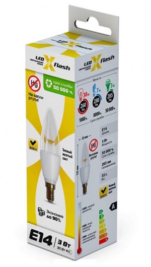 Светодиодная лампа X-Flash CANDLE E14 3W предназначена для общего и декоративного освещения. Малый цоколь Е14 позволит вам поставить её в любую люстру, торшер или бра. Имеет прозрачную колбу в форме пламени свечи.