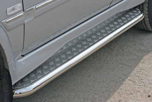 Пороги на ТагАЗ Road Partner – это боковые подножки из нержавеющей стали диаметром 60 мм, которые позволяют более комфортно входить и выходить из салона автомобиля. Подножки ТагАЗ Road Partner очень прочные, надежные и долговечные: они не боятся коррозии, сколов и царапин и выдерживают большие нагрузки.
