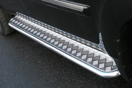 Боковые пороги-подножки сделаны специально для автомобилей Honda Pilot от 2008 г.в., поэтому устанавливаются достаточно просто и без повреждений корпуса. Помимо этого, стальные пороги с листом для Хонда Пилот смотрятся очень стильно и эффектно. Они добавят вашему авто еще больше солидности и внушительности.