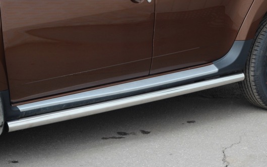 Пороги на Renault Duster – это боковые подножки из нержавеющей стали диаметром 60 мм, которые позволяют более комфортно входить и выходить из салона автомобиля. Подножки Renault Duster очень прочные, надежные и долговечные: они не боятся коррозии, сколов и царапин и выдерживают большие нагрузки.
