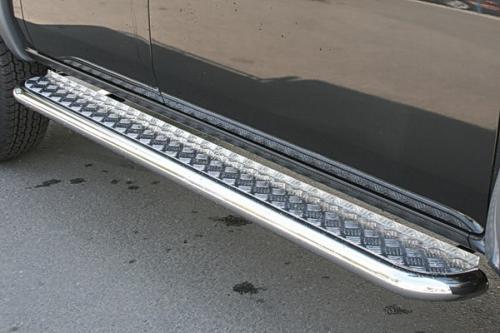 Боковые пороги-подножки сделаны специально для автомобилей Mazda BT-50 от 2007 г.в., поэтому устанавливаются достаточно просто и без повреждений корпуса. Помимо этого, стальные пороги с листом для Мазда БТ-50 смотрятся очень стильно и эффектно. Они добавят вашему авто еще больше солидности и внушительности.