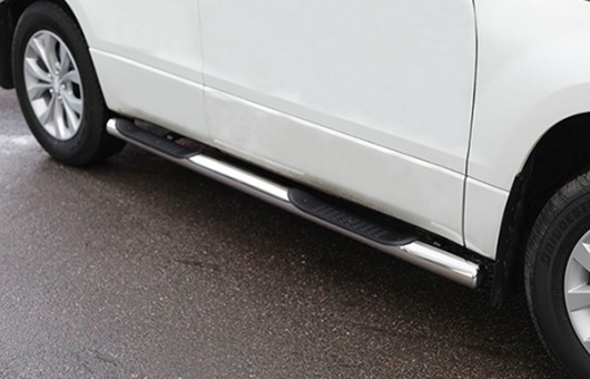 Пороги на Suzuki Grand Vitara – это боковые подножки из нержавеющей стали диаметром 76 мм, которые позволяют более комфортно входить и выходить из салона автомобиля. Подножки Suzuki Grand Vitara очень прочные, надежные и долговечные: они не боятся коррозии, сколов и царапин и выдерживают большие нагрузки.