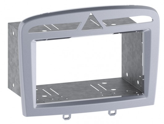 Переходная рамка-салазки Intro RFR-N24 серебристого цвета позволит вам без проблем установить стандартную магнитолу размером 2din в штатное место автомобиля Peugeot  308 (2007 - 2013 г.в.).. Рамка выполнена из высококачественных ABS пластмасс, а по цвету и текстуре она полностью повторяет интерьер вашего авто.