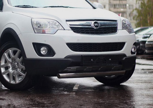 Труба на бампер Opel Antara защищает передний бампер автомобиля от различных механических повреждений при мелких ДТП и неудачных парковках, а также незаменима при езде по бездорожью. А кроме этого, труба на передний бампер Опель Антара смотрится очень стильно и эффектно.