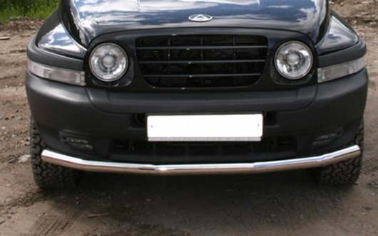 Защита переднего бампера труба предназначена для автомобилей ТагАЗ Tager. Вам не придется подгонять защиту под размеры бампера вашего авто. И с монтажом проблем не возникнет: установка защиты переднего бампера производится в штатные отверстия, а значит, необходимость сверлить кузов отпадает.