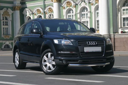 Труба на бампер Audi Q7 защищает передний бампер автомобиля от различных механических повреждений при мелких ДТП и неудачных парковках, а также незаменима при езде по бездорожью. А кроме этого, труба на передний бампер Ауди Q7 смотрится очень стильно и эффектно.