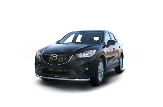 Защита переднего бампера труба предназначена для автомобилей Mazda CX-5 от 2012 г.в. Вам не придется подгонять защиту под размеры бампера вашего авто. И с монтажом проблем не возникнет: установка защиты переднего бампера производится в штатные отверстия, а значит, необходимость сверлить кузов отпадает.