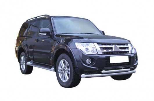Защита переднего бампера для Mitsubishi Pajero IV – это двойная труба на бампер из нержавеющей стали диаметром 76/60 мм.