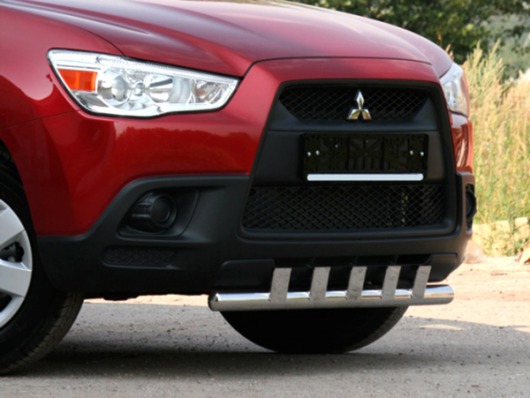Защита переднего бампера труба с профильными элементами предназначена для автомобилей Mitsubishi ASX от 2010 г.в. Вам не придется подгонять защиту под размеры бампера вашего авто. И с монтажом проблем не возникнет: установка защиты переднего бампера производится в штатные отверстия, а значит, необходимость сверлить кузов отпадает.