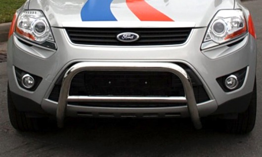 Защитная решетка переднего бампера предназначена для автомобилей Ford Kuga от 2008 г.в. Вам не придется подгонять передний кенгурятник под размеры кузова вашего авто. И с монтажом проблем не возникнет: установка кенгурятника Ford Kuga производится в штатные отверстия, а значит, необходимость сверлить кузов отпадает.