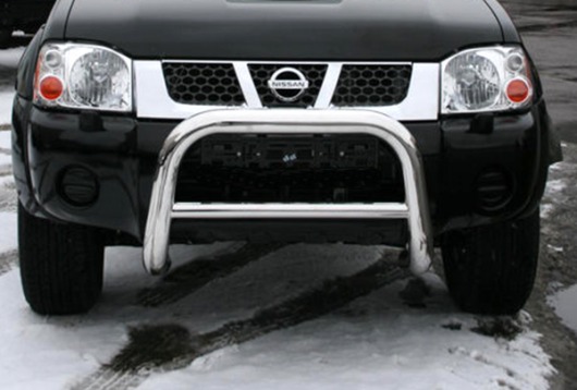 Передняя решетка Nissan NP300 (кенгурятник) – это защитная дуга на бампер из нержавеющей стали диаметром 76 мм.