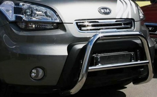 Передняя решетка Kia Soul (кенгурятник) – это защитная дуга на бампер из нержавеющей стали диаметром 60 мм.