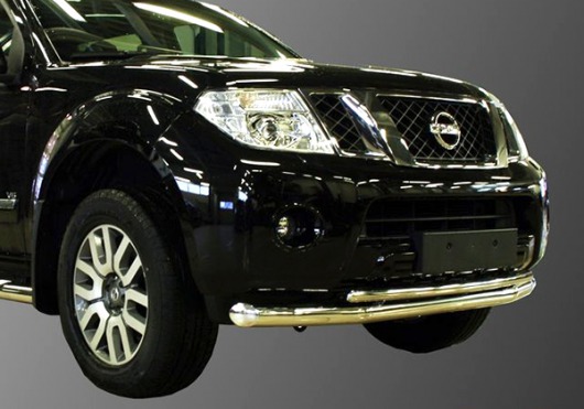 Защита переднего бампера для Nissan Pathfinder – это двойная труба на бампер из нержавеющей стали диаметром 76/42 мм.