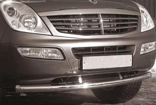 Защита переднего бампера труба предназначена для автомобилей SsangYong Rexton от 2007 г.в. Вам не придется подгонять защиту под размеры бампера вашего авто. И с монтажом проблем не возникнет: установка защиты переднего бампера производится в штатные отверстия, а значит, необходимость сверлить кузов отпадает.