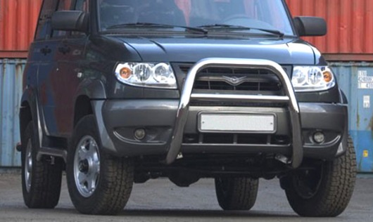 Передняя решетка UAZ Patriot (кенгурятник) – это защитная дуга на бампер из нержавеющей стали диаметром 76 мм.
