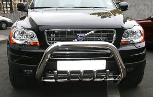 Передняя решетка Volvo XC90 (кенгурятник) – это защитная дуга на бампер из нержавеющей стали диаметром 76 мм.