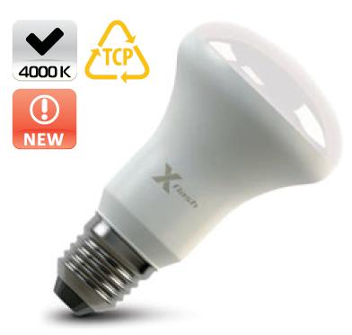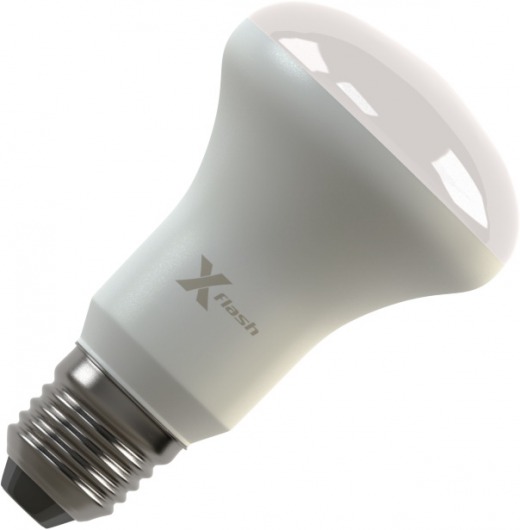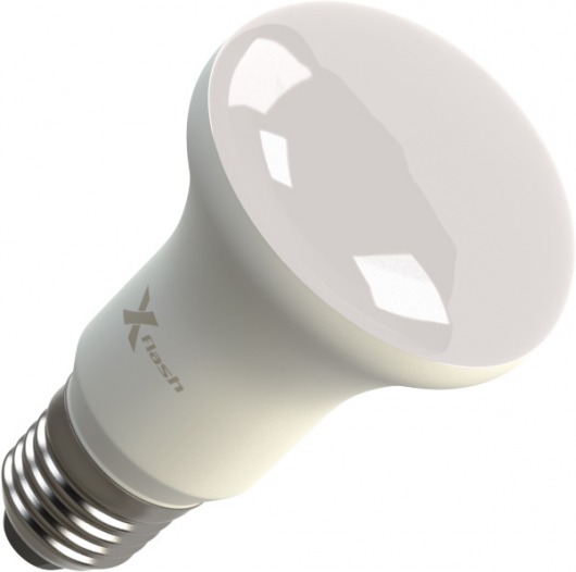Светодиодная лампа X-Flash FUNGUS E27 8W выполнена в форме лампы-рефлектора, корпус изготовлен из теплорассеивающей пластмассы, что значительно повышает ее безопасность и снижает ее вес. По форме, цоколю и размерам led лампа соответствует аналогичным люминесцентным лампам и лампам накаливания. Она имеет алюминиевый радиатор, который эффективно понижает температуру внутри лампы. Данная модель рассчитана на напряжение 220 В. Мощность диодной лампы X-Flash — 8 Вт., яркость — 670 Лм, а температура свечения  4000 K (это нейтральный белый свет).
