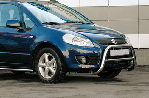 Передняя решетка Suzuki SX4 (кенгурятник) – это защитная дуга на бампер из нержавеющей стали диаметром 60 мм.