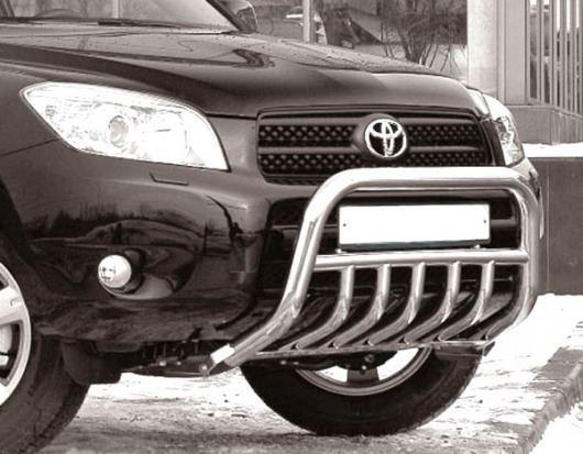 Передняя решетка Toyota RAV4 (кенгурятник) – это защитная дуга на бампер из нержавеющей стали диаметром 60 мм.