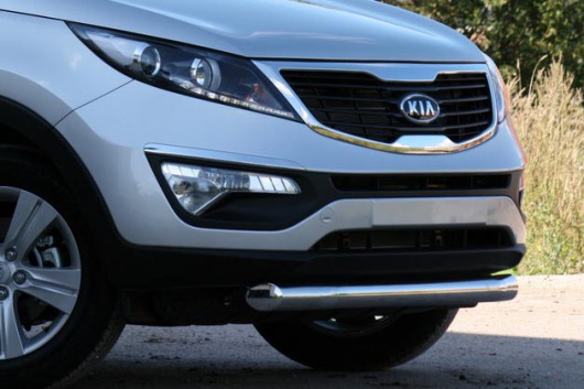 Защита переднего бампера для Kia Sportage – это труба на бампер из нержавеющей стали диаметром 76 мм.