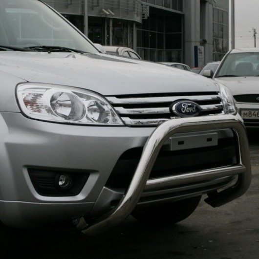 Передняя решетка Ford Escape (кенгурятник) – это защитная дуга на бампер из нержавеющей стали диаметром 76 мм.