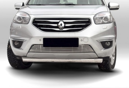 Труба на бампер Renault Koleos защищает передний бампер автомобиля от различных механических повреждений при мелких ДТП и неудачных парковках, а также незаменима при езде по бездорожью. А кроме этого, труба на передний бампер Рено Колеос смотрится очень стильно и эффектно.