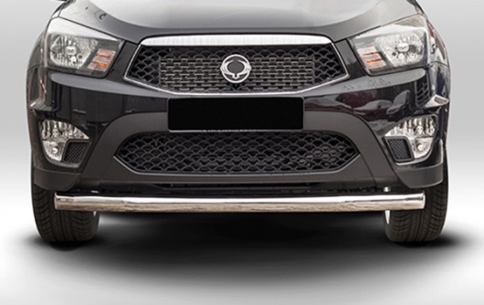 Труба на бампер SsangYong Actyon Sport защищает передний бампер автомобиля от различных механических повреждений при мелких ДТП и неудачных парковках, а также незаменима при езде по бездорожью. А кроме этого, труба на передний бампер Санг Енг Актион Спорт смотрится очень стильно и эффектно.