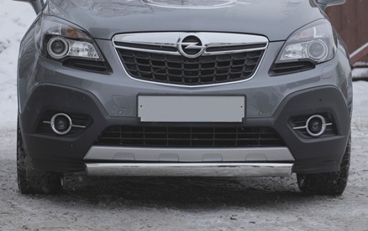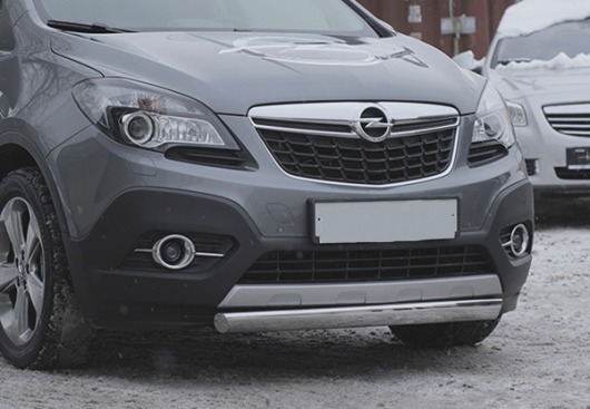 Труба на бампер Opel Mokka защищает передний бампер автомобиля от различных механических повреждений при мелких ДТП и неудачных парковках, а также незаменима при езде по бездорожью. А кроме этого, труба на передний бампер Опель Мокка смотрится очень стильно и эффектно.